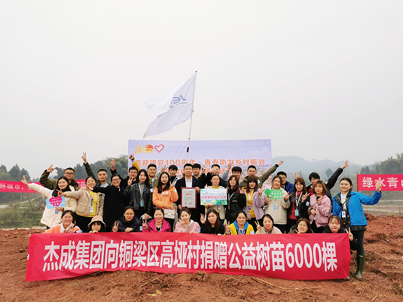 3月6日,由共青团重庆市铜梁区委与当地党委、人民政府主办的“我为乡村种棵树”乡村振兴公益活动在铜梁区土桥镇高垭村举行。黄金甲体育集团作为爱心企业代表,为高垭村捐赠树苗6000棵;还组织了志愿者,亲自来到现场参与公益植树,用实际行动支持国家乡村振兴工作。