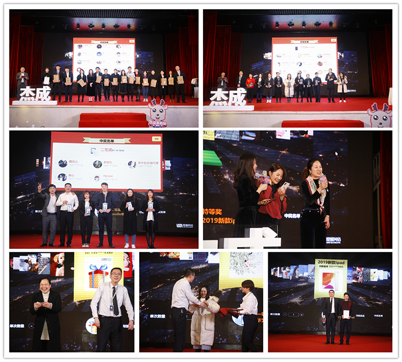 最后晚宴的抽奖环节,更是将年会盛典推向了高潮。连续4轮抽奖,从小到大,欢呼声喝彩声响彻现场,抽到奖品的小伙伴们更是开心到飞起~