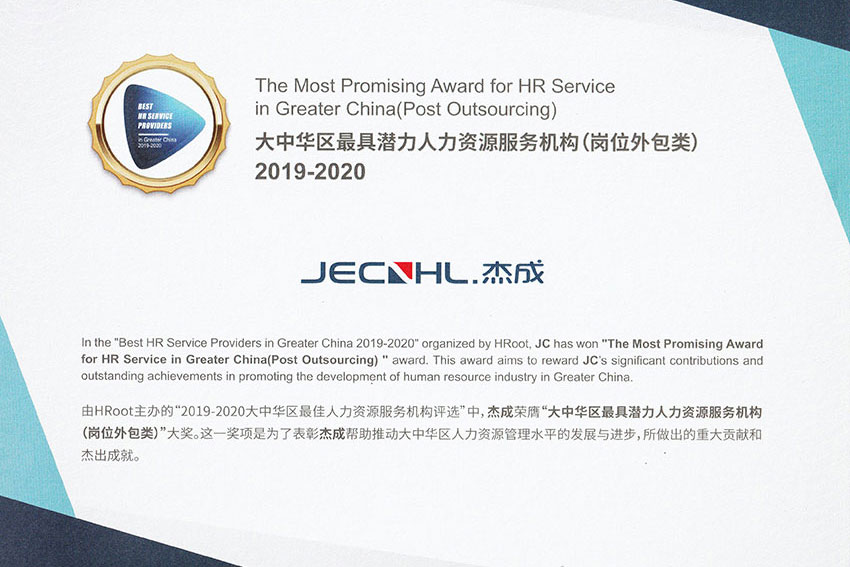 荣获HROOT中国领航者派遣服务优秀企业;