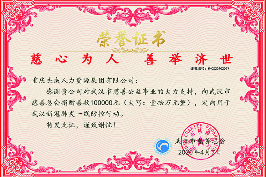 荣获重庆市人民政府办公厅表彰“先进人力资源服务机构”;