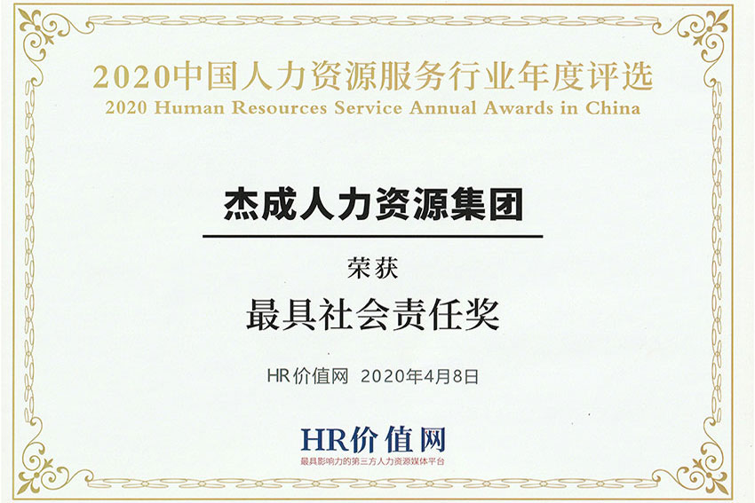 荣获“中国人力资源服务行业最具社会责任奖”