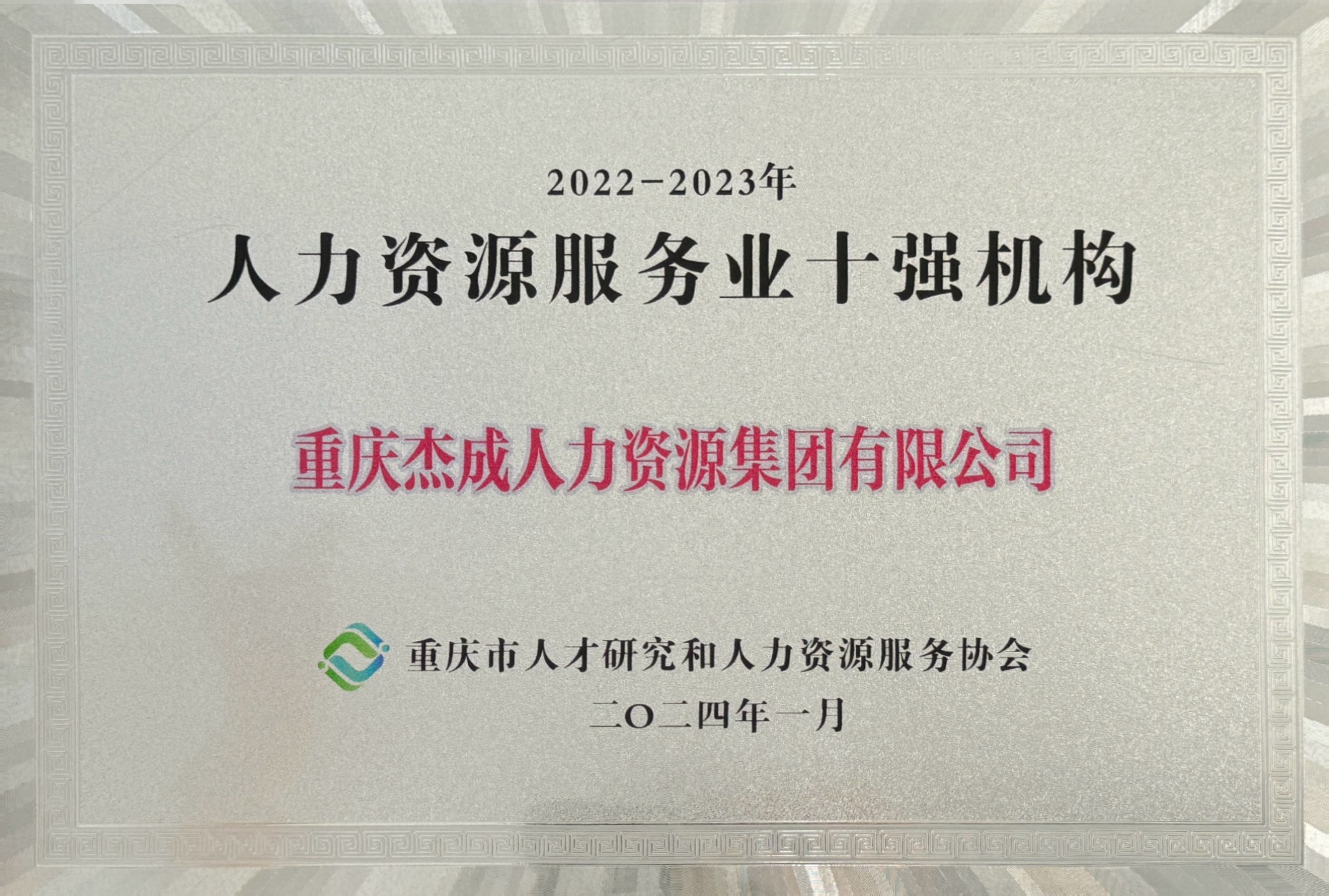 荣获重庆市人力资源服务业10强