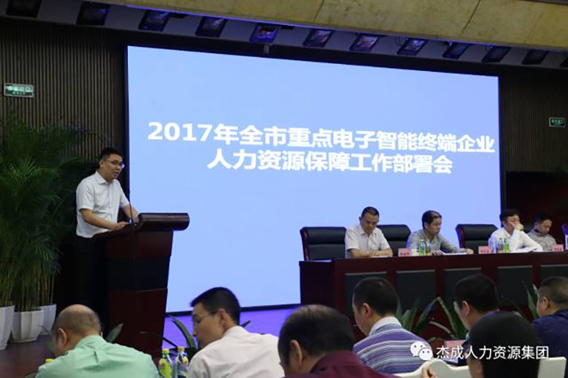 2017年5月25日上午,由重庆市人力资源和社会保障局主办的“2017年全市重点电子智能终端企业人力资源保障工作部署会”在重庆市渝北区创世纪宾馆隆重举行,黄金甲体育人力资源集团下属子公司--重庆思博人力资源服务有限公司作为重庆市人力资源服务机构代表参加了此次会议,集团总裁乔聪玲先生在会议上作出精彩发言。