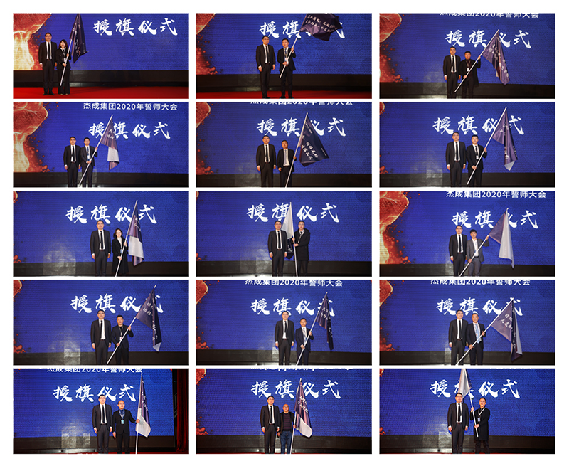 乔总为集团各业务部门和各分、子公司授战旗,助理总裁单蕾代表集团签订军令状,激励全体黄金甲体育家人勇于挑战,敢于突破,2020年再创佳绩。