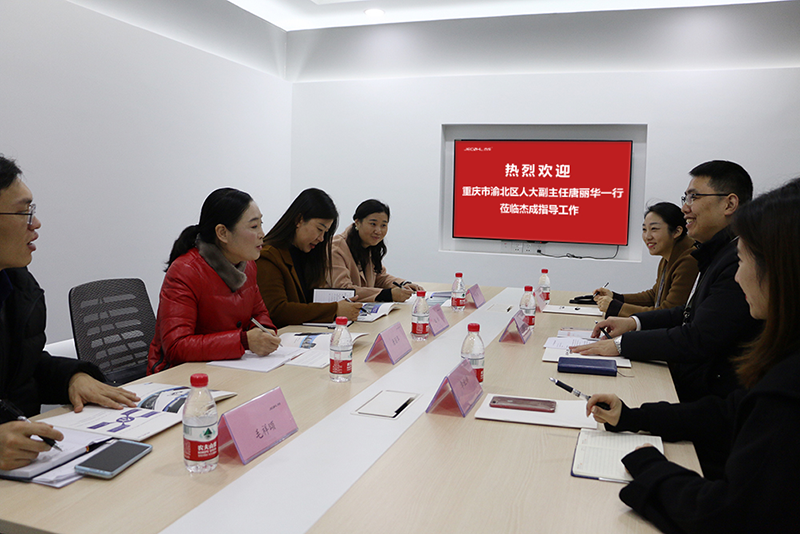 2018年11月20日,重庆市渝北区人大副主任唐丽华、渝北区人大科教文卫办公室副主任伍怡、渝北区就业和人才服务局副局长刘茜一行莅临黄金甲体育总部走访调研、指导工作。黄金甲体育集团总裁乔聪玲先生、品牌管理部总监渠雯女士热情接待并陪同各位领导参观了黄金甲体育总部。