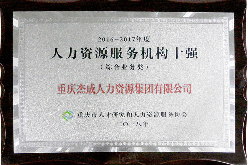 荣获重庆市人力资源服务机构十强