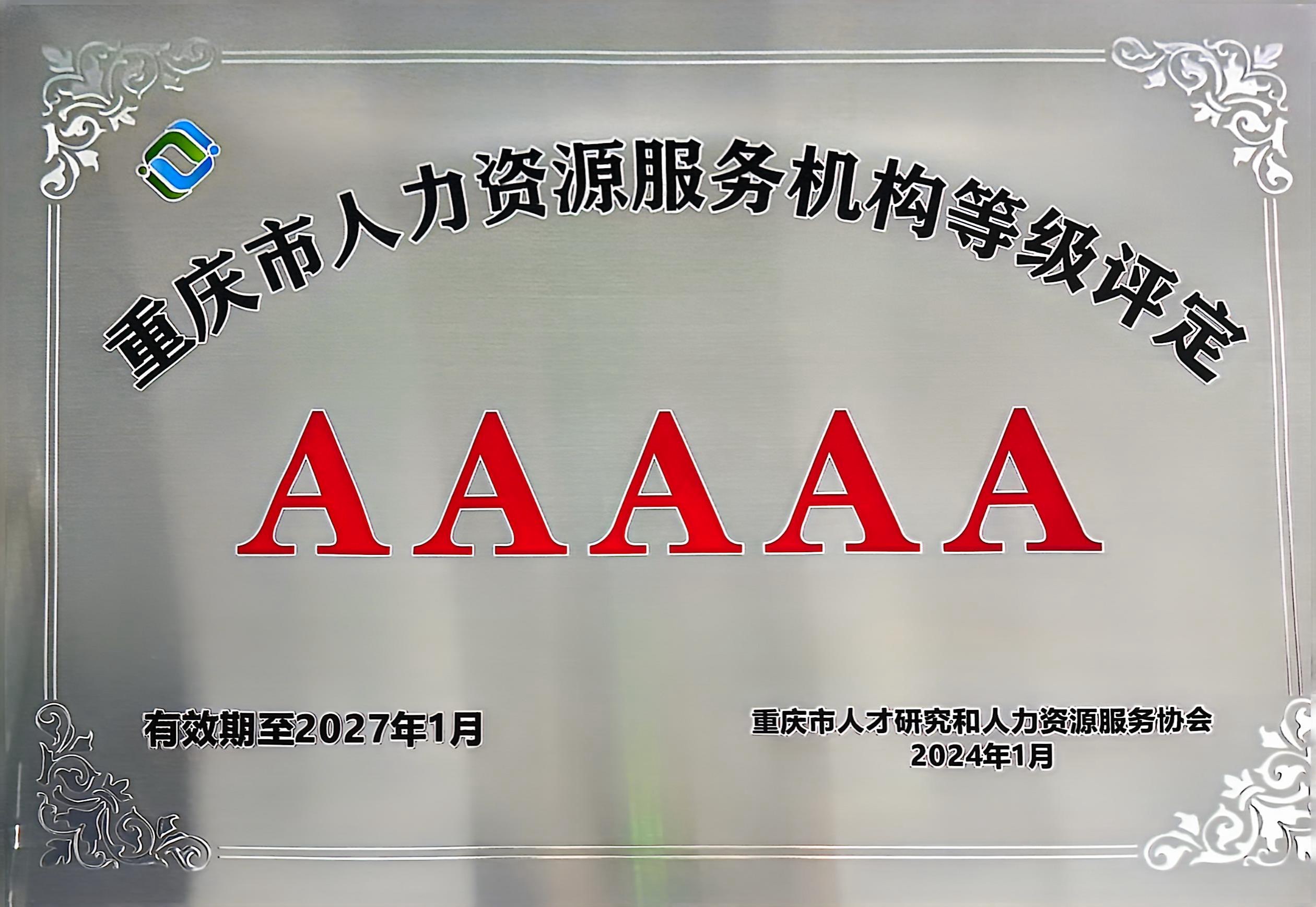 荣获重庆市人力资源服务5A机构;